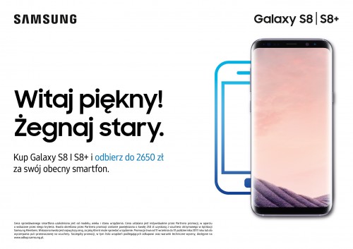 W ramach promocji „Witaj piękny! Żegnaj stary” klienci, którzy zakupili Galaxy S8/S8+ będą mogli pobrać promocja obejmuje wybrane modele smartfonów i potrwa do 31 października 2017.