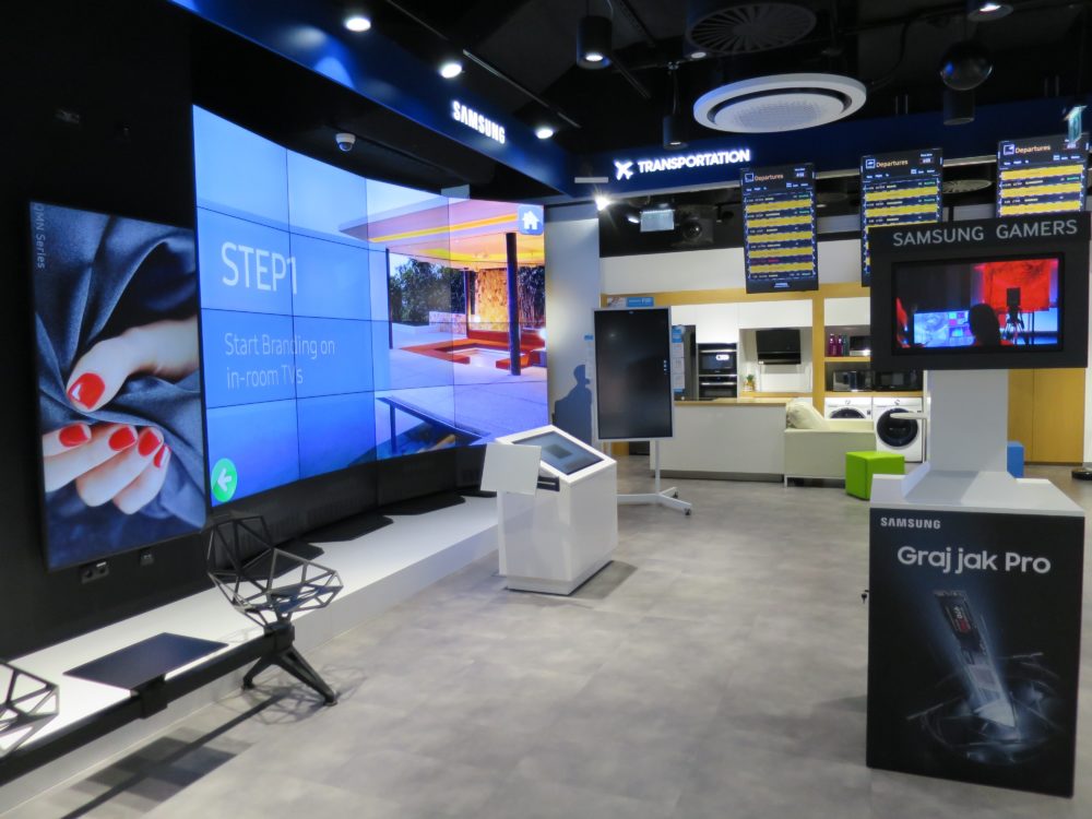 Showroom zlokalizowany przy ul. Postępu 14, w Warszawie gdzie mieści się polska siedziba firmy, wyposażony został w najnowsze urządzenia do wyświetlania obrazu w zastosowaniach biznesowych. Partnerzy biznesowi i klienci firmy mieli okazję zobaczyć wyświetlacz QLED 8K Signage, wykorzystujący technologię poprawiającą jakość obrazu (upscaling) oraz dwustronne ekrany z seriOMN-D, charakteryzujące się jasnością 3000 nitów i działające w trybie 24/7. Ekran QLED 8K Signage otrzymał nagrodę AV News Award w kategorii Digital Signage Innovation of the Year oraz nagrody Best of Show przyznane przez wydawnictwo branżowe Installation na targach Integrated Systems Europe 2019.