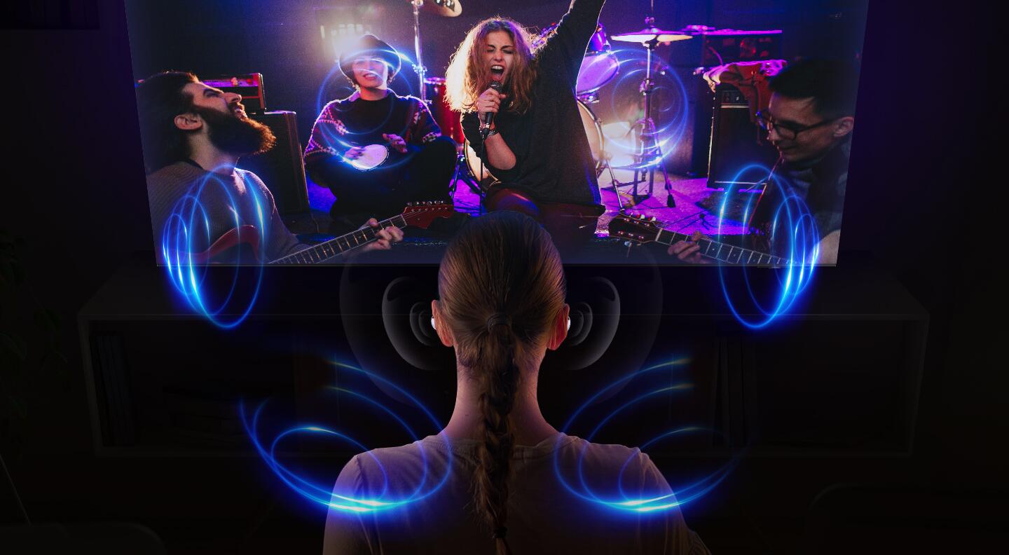 Technologia Q-Symphony[2] to jedna z najbardziej innowacyjnych funkcji Samsung, która umożliwia jednoczesną pracę głośników telewizora i soundbara, tworząc najwyższą synergię dźwięku. Unowocześniona technologia zapewnia zoptymalizowany dźwięk wszystkich kanałów, a sztuczna inteligencja remasteruje obiekty dźwiękowe wyodrębnione z oryginalnego wejścia audio, zapewniając niespotykaną dotąd gamę doświadczeń. Dzięki temu można odnieść wrażenie, jakbyśmy znajdowali się w centrum wydarzeń i brali udział w filmowej akcji.