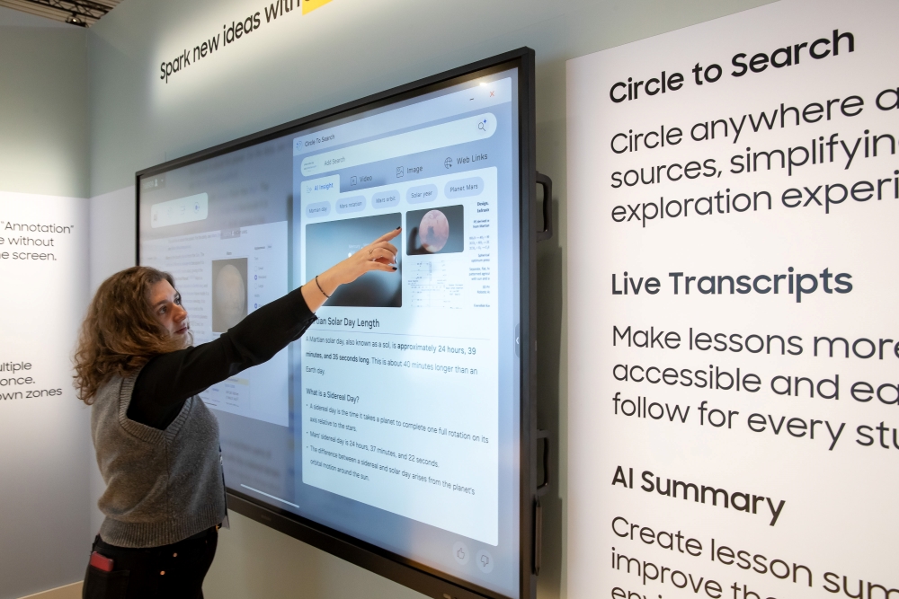 Nowe Wyświetlacze Interaktywne z Samsung AI Assistant to przełomowe narzędzia edukacyjne oferujące interaktywną naukę wspieraną przez sztuczną inteligencję, w tym funkcję Circle to Search.