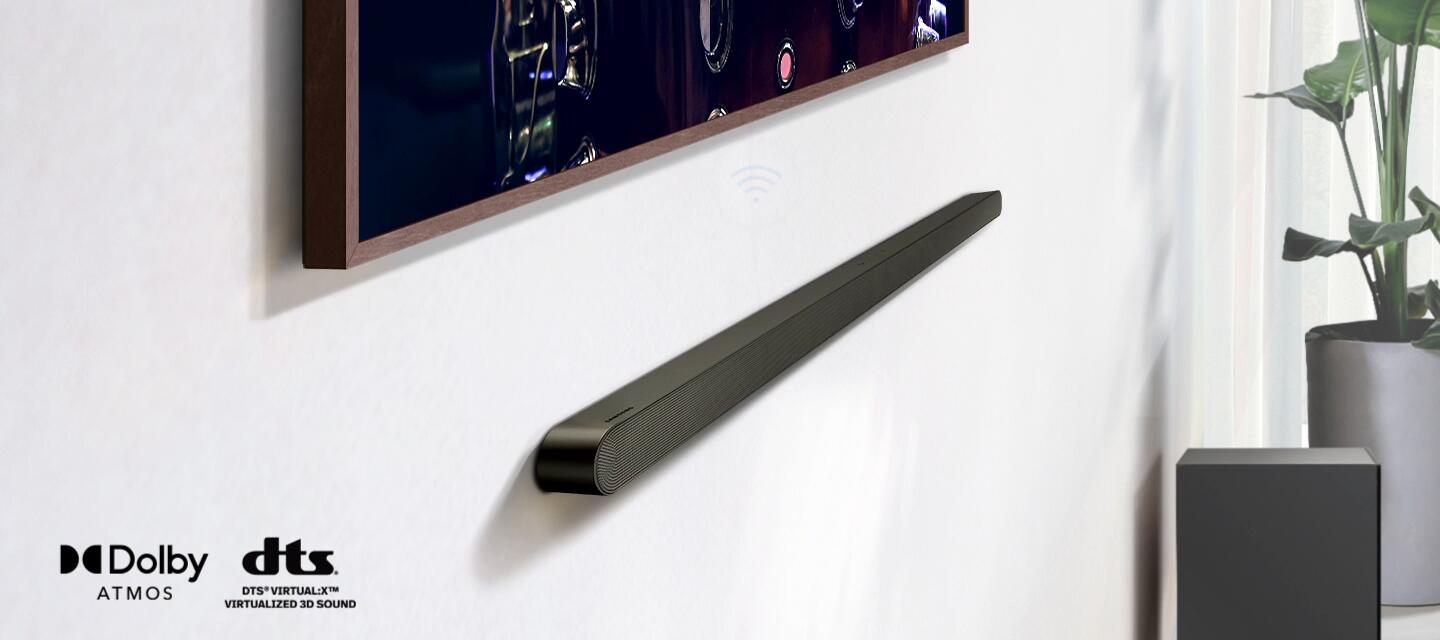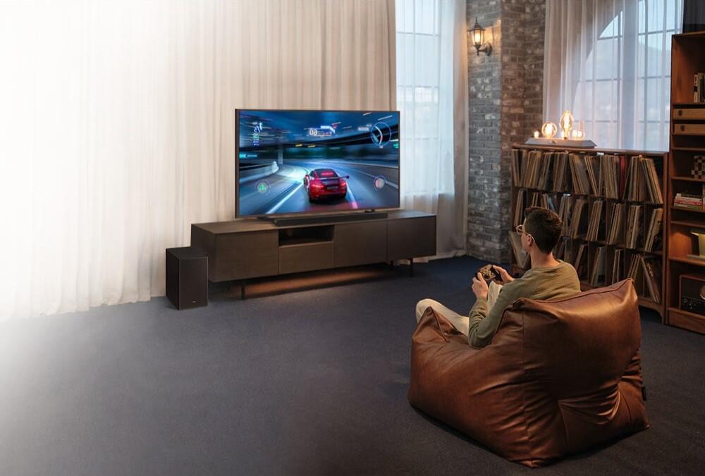 Natomiast Q-Symphony[2], czyli jedna z najbardziej innowacyjnych funkcji Samsung, umożliwi współpracę głośników telewizora i soundbara. Teraz, dzięki wdrożeniu i wykorzystaniu sztucznej inteligencji, zapewni jeszcze bardziej wciągające wrażenia dźwiękowe, odtwarzające czystsze, lepiej oddzielone i bogatsze dźwięki. Technologia Q-Symphony zapewnia zoptymalizowany dźwięk ze wszystkich kanałów, a sztuczna inteligencja remasteruje obiekty dźwiękowe wyodrębnione z oryginalnego wejścia audio. Dodatkowo, Dźwięk Dopasowany Do Przestrzeni[3] sprawi, że soundbar automatycznie rozpozna otoczenie, a następnie dostosuje zasięg i ton dźwięku, tak by perfekcyjnie dopasować się do miejsca, w którym go ustawisz.