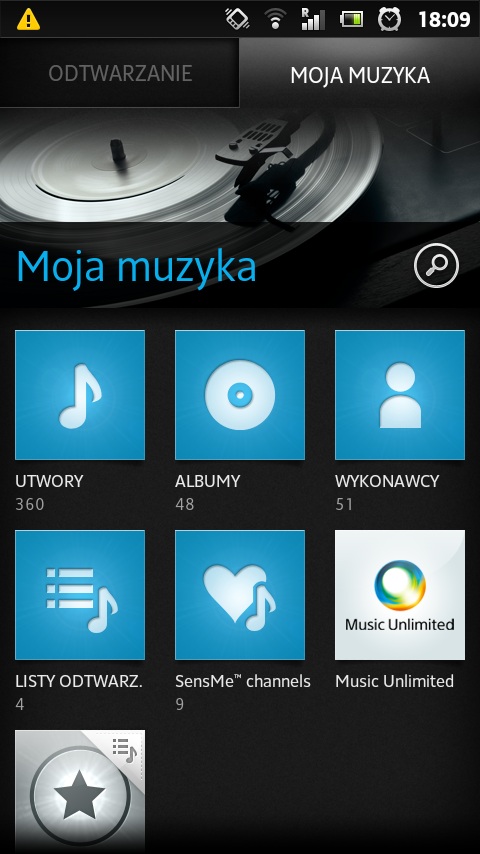 Bardzo spodobał mi się odtwarzacz muzyki w tym telefonie. Naszą fonotekę możemy podzielić wg albumów, wykonawców, list. Mamy do dyspozycji korektor – możemy wprowadzać własne ustawienia lub wybrać jedną z możliwych opcji: heavy, pop, jazz, unikatowe, soul, spokojne słuch. , podbicie basów, podbicie sopranowe, niestandardowe. Ponadto możemy uporządkować naszą muzykę tak iż będzie nam się wyświetlała odpowiednia okładka albumu i informacje dotyczące utworu – wszystko za pomocą edycji. Okładka jest pobierana z sieci, resztę informacji uzupełniamy samodzielnie. Mimo iż komórka ma tylko jeden głośnik u dołu to muzyka jest wyjątkowo głośna i wydobywane tony są czyste, nie ma żadnego nieprzyjemnego buczenia nawet na maksymalnym poziomie głośności.