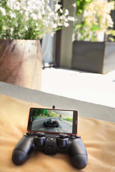 Sony zaprojektowało rewolucję w technologii grania z dodatkiem PS4 Remote Play w serii Xperia Z3. Z przeznaczonym wyłącznie dla Xperii PS4 Remote Play możesz teraz używać aparatów Xperia Z3 lub Xperia Z3 Compact jako zdalnego ekranu do łaczenia się i kontrolowania gier na PS4. W sytuacji, gdy najbliżsi używają Twojego telewizora, wystarczy podłączyć bezprzewodowego gamepada DUALSHOCK4 przy pomocy dedykowanego uchwytu GCM10 i już można swobodnie kontynuować grę na Xperii Z3 i Xperii Z3 Compact w dowolnym miejscu domu i ogrodka – w tej samej sieci wi-fi.