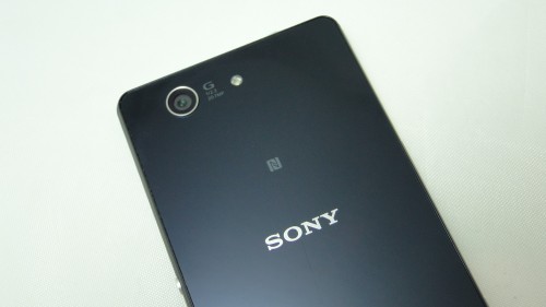 Na tylnym panelu umieszczono obiektyw aparatu, diodę LED, logo NFC, Sony oraz Xperii.