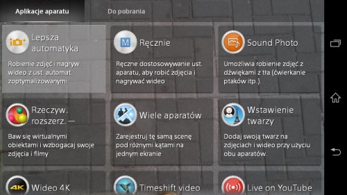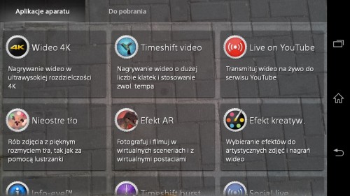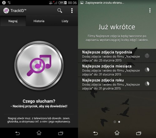 Jeśli chcemy się dowiedzieć, jakiej piosenki słuchamy lub jaki film oglądamy, możemy użyć aplikacji Track ID lub Track ID TV. Sony dodaje także program Video Unlimited do kupowania filmów oraz Movie Creator, który automatycznie tworzy krótkie filmy z naszych zdjęć i filmów, podobnie jak Zoe w telefonach HTC.