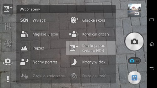 Przez wielu najczęściej używanym trybem będzie Ręcznie, czyli tryb w pełni manualny. Możemy tu m. in. dokonać wyboru sceny: Gładka skóra, wygładzająca zmarszczki i maskująca niedoskonałości twarzy, Miękkie ujęcie dla zdjęć o małej głębi ostrości, HDR, Śnieg, Sport, Kulinaria, Plaża, Dokument, Fajerwerki i wiele innych. Jest również regulacja czułości ISO. To właśnie w tym trybie możemy robić zdjęcia w maksymalnej rozdzielczości 20 megapikseli, przy proporcjach 4:3.
