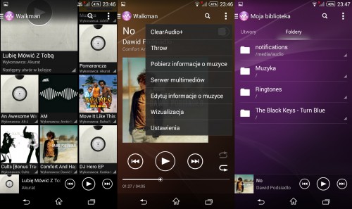 Multimedialne aplikacje to mocna strona Sony. Odtwarzacz muzyki Walkman jest ładnie zaprojektowany i zmienia kolor tła, dopasowując się do kolorystyki okładki. Mamy tu standardowy podział na wykonawców, albumy, utwory, listy odtwarzania oraz foldery. Aplikacja posiada moduł pobierania okładek oraz dodawania informacji o utworach, oferuje pełnoekranowe wizualizacje oraz korektor dźwięku. Jednym słowem – jest kompletna. W dodatku gra świetnie na słuchawkach i dobrze na zewnętrznych głośnikach stereo. Nie możemy tu oczekiwać jakości znanej z HTC, ale jest lepiej niż u Samsunga czy LG. Xperia posiada również radio z RDSem.