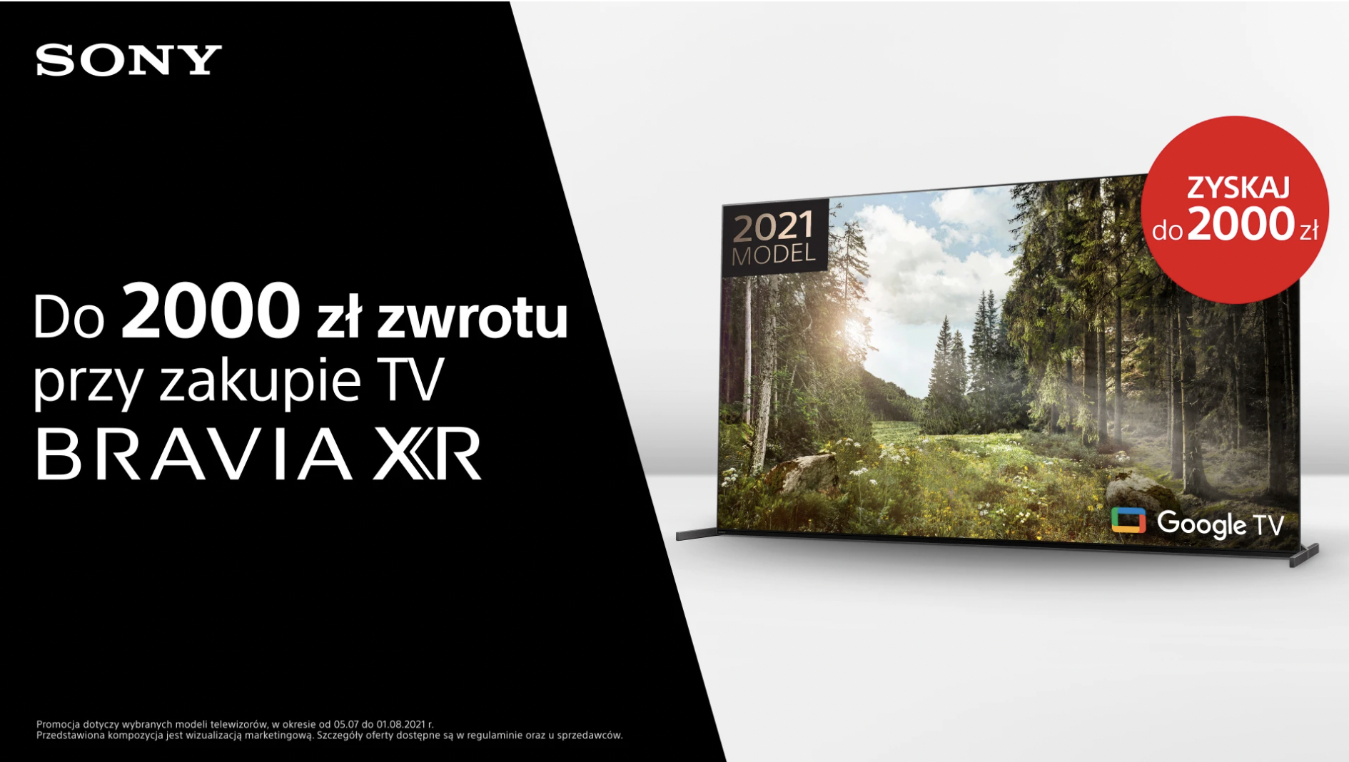 Firma Sony przygotowała atrakcyjną promocję Cashback, dzięki której między 5 lipca a 1 sierpnia, przy zakupie wybranych modeli telewizorów Bravia XR 75 cali i większych, kupujący będzie mógł odebrać zwrot gotówki nawet do 2 000 zł!