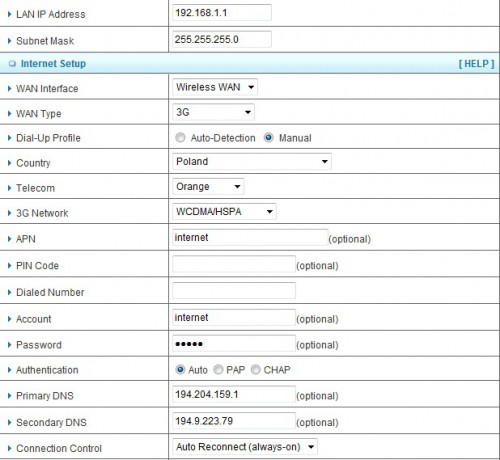 Po skonfigurowaniu ustawień i zrestartowaniu routera mamy już świat Internetu w naszym laptopie lub komórce, możemy także udostępnić łącze kolejnym użytkownikom (do 5 urządzeń jednocześnie). Może się tak zdążyć, że router nie będzie działał w ustawieniach fabrycznych, mi np. z Orange połączył dopiero po usunięciu numeru wdzwanianego *99#. Ponadto warto zaznaczyć, że router ma problemy z połączeniem, gdy mamy niski poziom sygnału stacji bazowej.