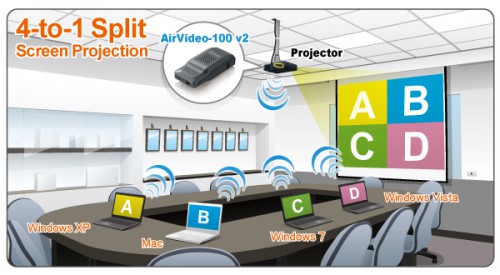 Bezprzewodowy prezenter firmy AirLive, AirVideo-100v2 to rozwiązanie każdego pokoju konferencyjnego. Dzięki temu urządzeniu można bez przeszkód rozszerzyć funkcjonalność projektora – będzie on w stanie odtwarzać obraz bezprzewodowo. Wystarczy wpiąć do gniazda AirVideo-100v2 i można cieszyć się bezprzewodowym obrazem. Dzięki temu urządzeniu nie jest wymagana modernizacja istniejącej infrastruktury o nowe urządzenia.