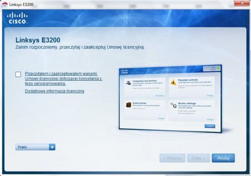 Jak przebiega instalacja urządzeń Linksys opisywałem, przy recenzji modelu: E4200 oraz X3000 i dlatego nie będę się powtarzał. Dodam, że po zalogowaniu się do panelu administracyjnego routera ujrzymy to samo, znane menu. Kto używał już raz sprzęt Linksysa, będzie tutaj czuł się jak w domu. Łączność bezprzewodową można włączyć/wyłączyć za pomocą umieszczonego z tyłu sprzętowego wyłącznika – to jedna z zalet tego routera. Po skonfigurowaniu routera za pomocą oprogramowania instalacyjnego (znajdującego się na płycie CD) jest on gotowy do użytku. Aby zmienić zaawansowane ustawienia routera lub jeśli oprogramowanie nie uruchamia się, można użyć narzędzia WWW routera. Dostęp do narzędzia można uzyskać za pomocą przeglądarki internetowej komputera podłączonego do routera.