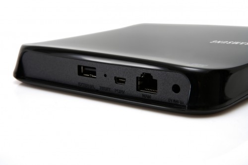 Napęd optyczny Smart Hub łączy w sobie zalety zewnętrznego odtwarzacza, nagrywarki DVD oraz bezprzewodowego routera. Urządzenie współpracuje z notebookami z systemem Windows oraz MacBookami, a także smartfonami, tabletami i telewizorami Samsung Smart TV. Smart Hub działa m.in. jako bezprzewodowy odtwarzacz płyt CD/DVD, a także plików multimedialnych zapisanych na nośnikach zewnętrznych (USB). Dzięki takiemu rozwiązaniu użytkownik może komfortowo oglądać filmy lub słuchać muzyki np. na swoim ultrabooku lub tablecie bez potrzeby kopiowania na niego danych. Napęd optyczny Samsung Smart Hub funkcjonuje jako HotSpot i zapewnia bezprzewodowy dostęp do Internetu z poziomu komputerów przenośnych, tabletów i smartfonów. Ponadto urządzenie działa jak router i pozwala połączyć ze sobą oraz siecią cztery urządzenia jednocześnie (np. tablet, smartfon, notebook, telewizor Smart TV). Napęd optyczny Smart Hub w pełni integruje się z urządzeniami firmy Samsung wyposażonymi w funkcję AllShare.