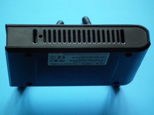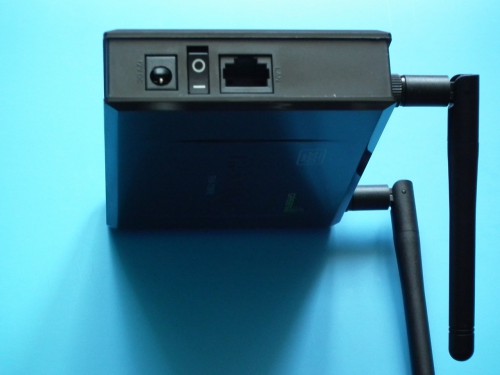 Diody LED znajdujące się na obudowie urządzenia pozwalają określić jego status bez potrzeby wchodzenia w tryb konfiguracyjny. Diody sygnalizacyjne znajdziemy na górnym panelu (świecą na zielono, gdy dana funkcja jest włączona) z prawej strony: Power LED (pracy urządzenia), Wi-fi LED, Ethernet LED i Wireless/WLAN LED (o stanie transmisji danych za pośrednictwem odpowiadającej im sieci).Gniazda i wyłacznik na prawej sciance obudowy.