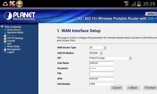 Modemy 3G z routerem Wi-Fi – to obecnie popularne akcesoria komputerowe, bez którego nie obejdzie się żaden mobilny internauta. Planet WNRT-320GS to urządzenie, które z założenia ma być możliwie bezobsługową mobilną bramką do Internetu. Skierowany z myślą o użytkownikach, pragnących mieć w swoich urządzeniach dostęp do Internetu w pasmie WCDMA / HSDPA / HSUPA (2100MHz) o prędkości do 7.2Mbps, bez konieczności kłopotliwej wymiany karty SIM. Taka prędkość pozwala na bezproblemowe korzystanie z sieci. Niestety, takie parametry techniczne modemu nie ucieszą wszystkich, którzy lubią szybkie połączenie z Internetem. Cena średnio 325,00 zł – do najniższych nie należy, tym bardziej, że konkurencja oferuje już modemy bezprzewodowe 3G pozwalające korzystać z dostępnego w Polsce Internetu w HSPA+. Technologia ta teoretycznie pozwala na osiągnięcie transferu na poziomie 21 Mb/s i na pobieranie oraz wysyłanie dużych plików oraz na korzystanie z jednego pasma kilku urządzeniom bez zauważalnych spadków szybkości działania Internetu. A niektórzy nasi Czytelnicy mogą pochwalić się technologią LTE z przesyłem danych do 42 Mb/s.