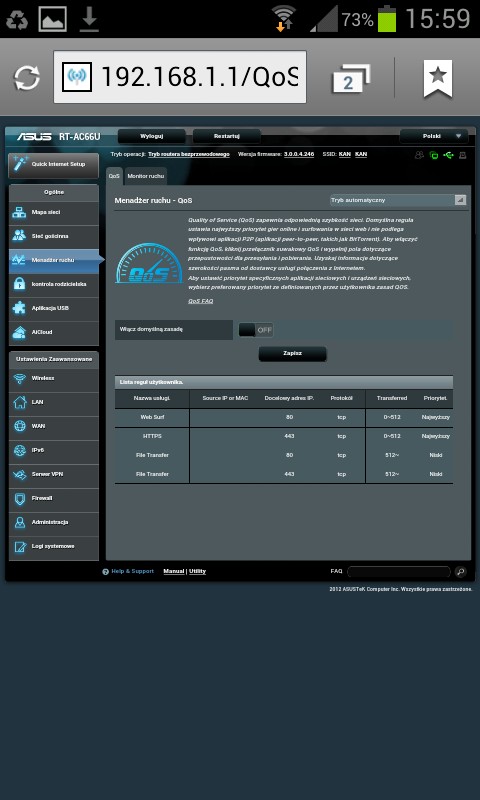 Witam, problem dualWANa rozwiązuje wgranie alternatywnego oprogramowania „by Merlin” . Jest to GUI zrobione na bazie oryginalnego na licencji opensource tak więc jest bezpieczne 🙂 – są po prostu poprawione błędy oprogramowania oryginalnego od asusa + dodatkowe narzedzia odministracyjne.