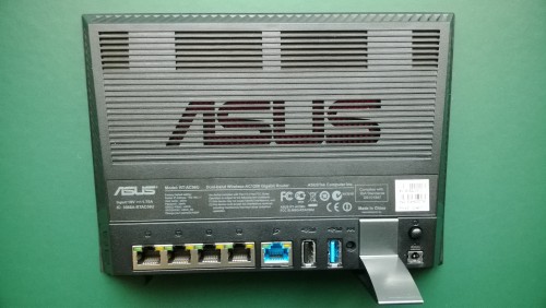 Z tyłu znajdziemy zestaw standardowych gniazd: 4x LAN (gigabitowe), 1x WAN gniazdo zasilacza, włącznik oraz porty USB 2.0 i 3.0. Obok portów USB zlokalizowano przycisk resetu. Szkoda jedynie, że brak tutaj możliwości wymiany anten. Zasięg routera zapewniają 4 x anteny, wbudowane wewnątrz obudowy, Dockon CPL (dwie 2.4GHz i dwie 5GHz). Technologia ASUS AiRadar, biorąc pod uwagę liczbę urządzeń w sieci domowej oraz ich położenia, w sposób inteligentny wzmacnia połączenia pomiędzy nimi a routerem.