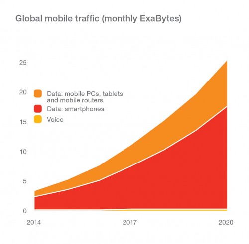 Mobilny ruch sieciowy będzie rósł w tempie 40% rocznie. Jak wynika z raportu Ericsson Mobility Report, smartfony będą generować pięć razy więcej danych niż obecnie i w roku 2020 będą odpowiadać za 70% mobilnego ruchu sieciowego.