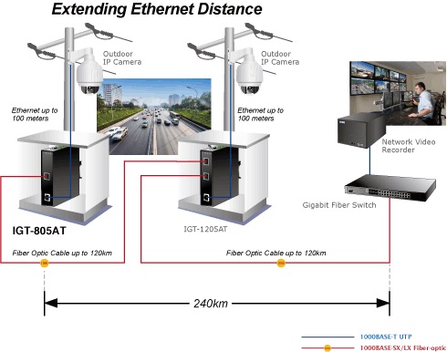 Slot SFP jest kompatybilny z transceiverami światłowodowymi 100Base-FX lub 1000Base-SX/LX/WDM przez SFP (Smart Form Factor Pluggable). Obsługa połączeń światłowodowych gwarantuje wysoką przepustowość do wszystkich węzłów w sieci i pozwala na rozszerzenie zasięgu połączenia sieci Gigabit Ethernet z 550 metrów (kabel światłowodowy Multi-Mode) do 10/20/30/40/50/70/120 kilometrów (kabel światłowodowy Single-Mode). Także zasięg sieci Fast Ethernet może być rozszerzony – z 2 kilometrów (kabel światłowodowy Multi-Mode) do 20/40/60 kilometrów (kabel światłowodowy Single-Mode). Te rozwiązania umożliwiają stosowanie IGT-805AT w centrach danych.