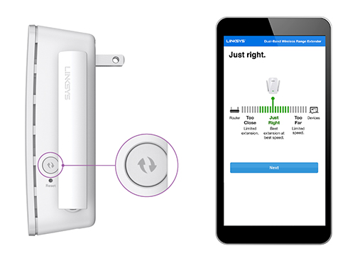 Wystarczy kliknąć przycisk „Połącz” na obudowie range extendera aby automatycznie połączyć go z routerem. Kolejny krok to szybka konfiguracja ze smartfonu, tabletu lub laptopa. Jeśli range extender zostanie umieszczony zbyt daleko od routera, rozszerzanie zasięgu sieci może nie działać prawidłowo. Oprogramowanie Spot Finder pomoże znaleźć odpowiednie miejsce do instalacji RE6400.