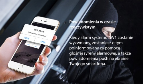 W takiej sytuacji komunikacja z systemem alarmowym za pośrednictwem aplikacji mobilnej nie będzie możliwa, ale będzie on dalej działał, to znaczy w razie włamania zostanie uruchomiona syrena alarmowa. Systemem będzie można również sterować za pośrednictwem dołączonego w zestawie pilota bezprzewodowego.