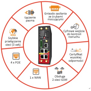 Model R2000 Dual posiada aż cztery porty PoE (Power of Ethernet). Jednak jego największą zaletą w kontekście zastosowań przemysłowych jest szybkie przełączanie się między dwoma dostępnymi sieciami komórkowymi, które trwa 3 sekundy, zamiast 30 sekund standardowo oferowanych przez zwykłe routery. Ponadto technologia, w której został zaprojektowany R2000 umożliwia większą prędkość przesyłu danych, co z kolei pozwala na sprawniejsze działanie całego środowiska sieci opartego o działanie tego routera.