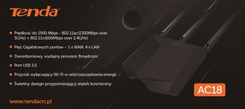 Router jest jednym z najważniejszych urządzeń w każdym domu. Stabilne łącze internetowe jest w dzisiejszych czasach priorytetem. Wymagamy, aby router oferował jak najlepszą wydajność podczas streamingu filmów online, muzyki czy gier. Wszystkie te kryteria spełnia Tenda AC18, który jest nie tylko zaawansowany technologicznie, lecz także posiada bardzo ciekawy design.