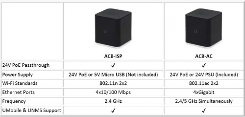 AirCube AC Dual-band oferuje 802.11ac i technologię 2×2 MIMO dla maksymalnej wydajności sprzętowej. Dla pasma 2.4 GHz zapewnia prędkość do 300 Mbps, natomiast dla pasma 5 GHz do 866,7 Mbps. Drugi model, airCube ISP pracuje w paśmie 2.4 GHz z prędkością do 300 Mbps. Działa w standardzie 802.11n.