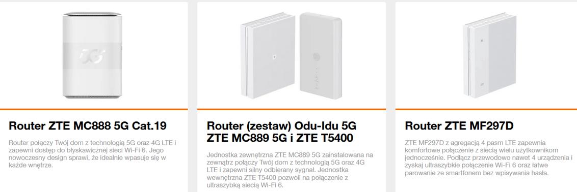 Wśród nowości, jakie pojawiły się w naszej ofercie, dostaniecie m.in.: Router TP-Link NX220v 5G, Odu Idu 5G TP-Link NE211 i HX510 . Niezmiennie w portfolio Orange znajdziecie też ODU-IDU ZTE MC889 5G , ZTE T5400, ZTE MF297D, które cieszą się ogromną popularnością. Poza wysoką jakością tych urządzeń i zdecydowanie mocniejszym sygnałem, dzięki antenie wewnętrznej, zwłaszcza na terenach podmiejskich, ogromną zaletą jednostka wewnętrzna ZTE T5400 za 1 zł. Pośród routerów wewnętrznych polecamy także TCL LINKHUB HH515L 5G, TCL LINKZONE MW12 czy ZTE MC888 5G – sprawdzone rozwiązania przy internecie mobilnym.