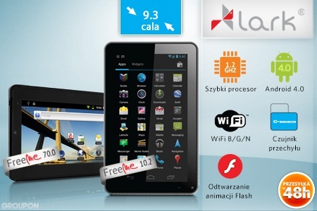 Od 199 zł: tablet Lark FreeMe 70.0 z systemem Android 2.2 oraz lub 499 zł za tablet Lark FreeMe 10.2 z systemem Android 4.0 i 5-letnią gwarancją. Model FreeMe 10.2 – dzięki procesorowi 1.2 GHz – jest wydajny, a 5-punktowy ekran o przekątnej 9,3” płynnie reaguje na dotyk.