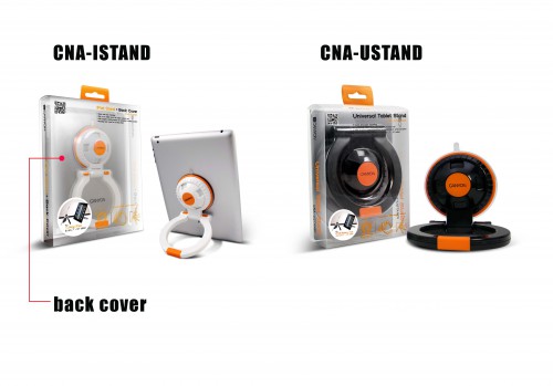 Uniwersalną wersją podstawki jest model CNA-USTAND, który dedykowany jest do wszystkich tabletów o przekątnej od 7 do 10 cali, takich jak iPad czy Galaxy Tab. Do CNA-ISTAND dołączono z kolei łatwą w montażu tylną pokrywę, idealnie dopasowaną do kształtów iPada, która dodatkowo podtrzymuje urządzenie.