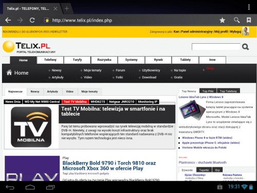 Ważnym komponentem każdego tabletu jest przeglądarka internetowa. Ta w MultiPad Prestigio 5097CPRO sprawuje się bardzo dobrze. Co najważniejsze, odwiedzane strony prezentują się w swoich naturalnych wersjach. Warto dodać, że procesor dobrze radzi sobie z codziennymi zadaniami, jakie przed nim stawia użytkownik. Strony WWW otwierają się płynnie, nie spotkałem się także chociażby z chwilowym zawieszaniem urządzenia. Małe zastrzeżenia można mieć do kątów widzenia.