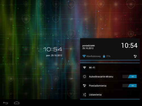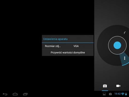 Parę zdań poświęćmy wbudowanej kamerce. Oczko aparatu jest umieszczone na przedniej ścianie obudowy i nadaje się właściwie tylko do przeprowadzania rozmów video lub robienia autoportretów na tle interesujących obiektów. Trudno jest jednak używać go do pstrykania zwyczajnych zdjęć (trzeba odwrócić tablet do siebie tyłem obudowy). Moim zdaniem jednak jakość, zarówno zdjęć i filmów jest tak słaba, że skorzystamy z tych funkcji naprawdę w wyjątkowej okoliczności, gdy zawiodą wszelkie inne możliwości zarejestrowania ważnego wydarzenia.