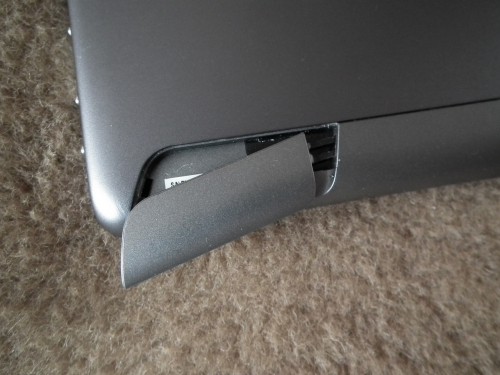 Po lewej stronie obudowy w układzie poziomym, znaleźć można przyciski POWER oraz sterowania głośnością, porty mini-USB, mini-HDMI, mini-jack, czytnik kart microSD, gniazdo zasilania oraz mikrofon.