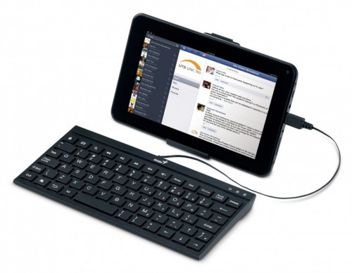 Genius LuxePad A110 to przewodowa klawiatura do tabletów z systemem operacyjnym Android 4.0 i nowszych. Producent umieścił na niej 10 dodatkowych klawiszy: 5 do obsługi multimediów, 3 do Internetu i 2 odpowiadające za funkcje tabletu. Dzięki nim użytkownik może włączyć odtwarzacz muzyki, klienta poczty lub zablokować ekran. Urządzenie jest zasilane z portu USB tabletu, ale pobór mocy jest na tyle niski, że nie wpłynie na żywotność baterii.