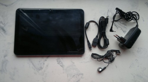 Sprzedawany zestaw zapakowany jest w dość duże kartonowe pudełko zamykane na magnetyczny zatrzask, kryje w sobie standardowe wyposażenie. W środku znajdziemy tablet, ładowarkę sieciową, kabel USB oraz kabel microUSB do podłączenia pamięci masowej lub innego urządzenia USB.