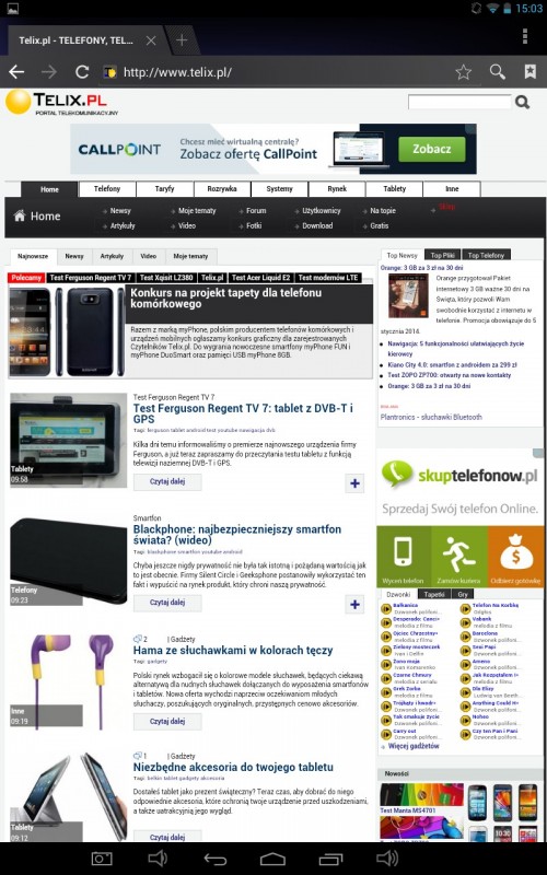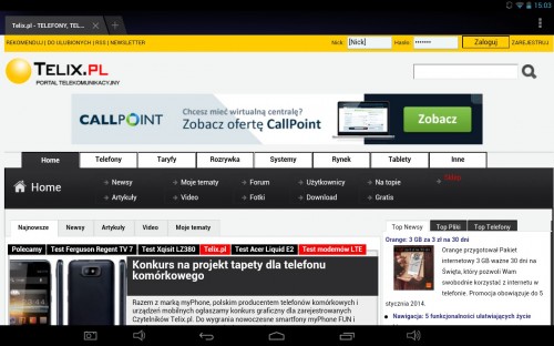 Minusem jest niestety brak modułu GPS więc korzystanie z tabletu jako nawigacji odbywać się może jedynie za pośrednictwem zewnętrznego modułu.