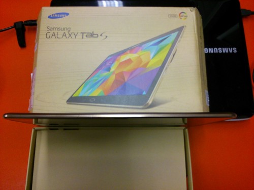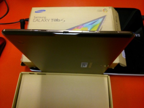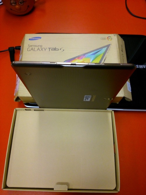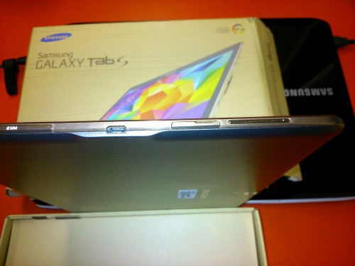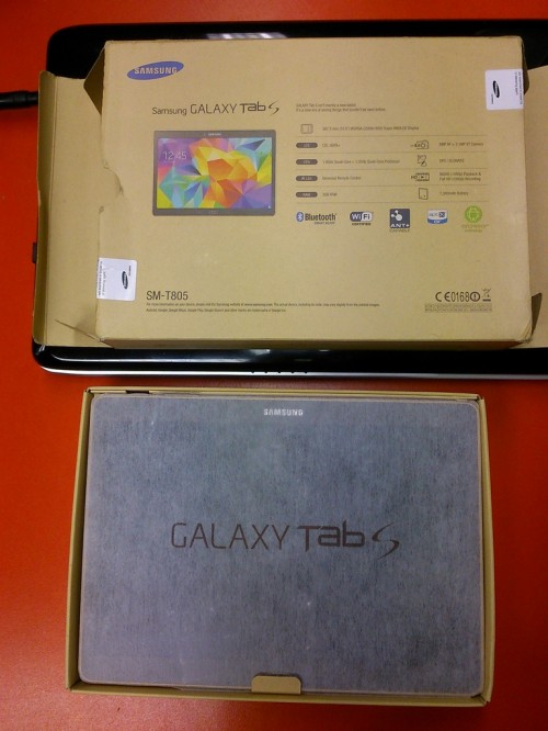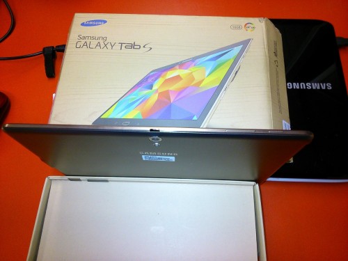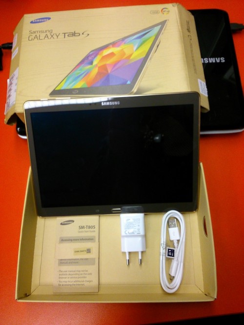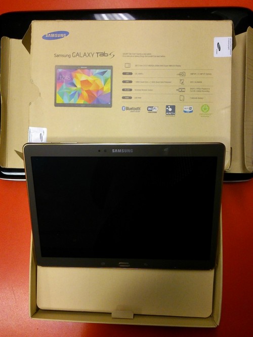 Posiada on 10,5-calowy wyświetlacz Super AMOLED o rozdzielczości 2560 x 1600 pikseli, który gwarantuje nie tylko ostry obraz i widoczność niemal pod każdym kątem, ale także doskonałe odwzorowanie kolorów. Za wydajność Galaxy Tab S odpowiada ośmiordzeniowy procesor (4 rdzenie o taktowaniu 1,9 GHz i 4 rdzenie o taktowaniu 1,3 GHz), wspierany przez 3 GB pamięci RAM. Są także dwie kamery: 8- i 2,1-megapikselowa. Bateria ma pojemność 7900 mAh, co pozwala na 9 godzin korzystania z sieci LTE na jednym ładowaniu. Tablet posiada 16 GB pamięci wewnętrznej, którą można rozszerzyć o kolejne 128 GB przy pomocy kart microSD.