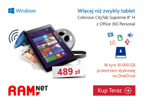 Tak czy siak sam kupiłem kolejny tani tablet z win8.1 i Office365 za 399 zł. Kiano z 3G