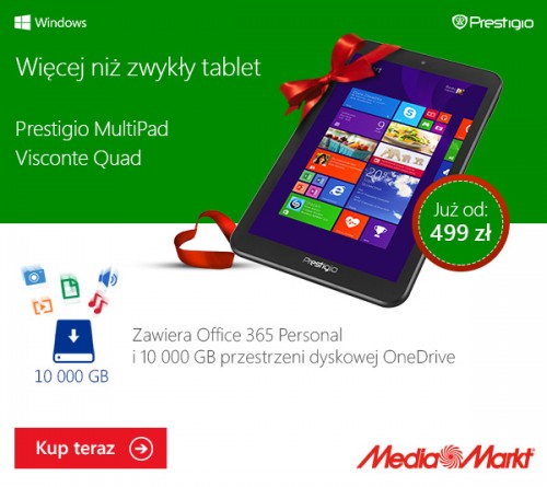 Partnerzy Microsoft pod hasłem „Więcej niż zwykły tablet” realizują także kampanie reklamowe trzech urządzeń pracujących na systemie Windows 8.1 oraz sprzedawanych z subskrypcją Office 365 Personal: Kiano Intelect 8, Prestigio MultiPad Visconte Quad oraz Colorovo CityTab Supreme 8” H. Kampania realizowana jest za pomocą reklam graficznych i banerów emitowanych na stronach parterów, mailingów informacji o produktach oraz reklam na serwisach internetowych należących do sieci kontekstowych.