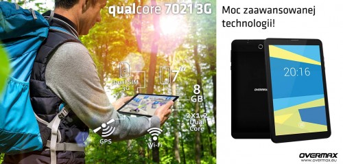 Qualcore 7021 3G to kolejny tablet Overmax z linii Qualcore z wbudowanym modemem 3G. Dzięki DualSim możemy bez przeszkód używać dwóch kart SIM jednocześnie. Dzięki ekranowi 7” tablet Qualcore 7021 3G jest poręcznym urządzeniem, a wbudowane złącze OTG, które umożliwi podłączenie dodatkowych urządzeń, takich jak przenośna pamięć.