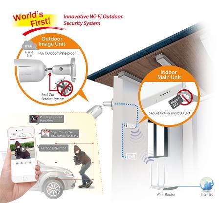 Edimax Technology zaprezentował innowacyjną, zewnętrzną kamerę IC-9110W do całodobowego monitorowania otoczenia domu lub firmy. Solidna metalowa obudowa zgodna z certyfikatem IP66 jest wodoodporna, a specjalny daszek chroni obiektyw przed zabrudzeniami. Przewód jest umieszczony w uchwycie kamery, dzięki czemu nie ulegnie zniszczeniu lub uszkodzeniu.