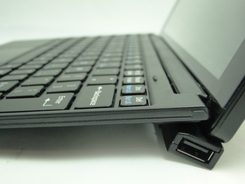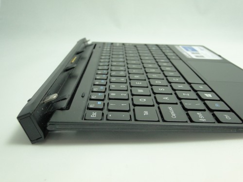 Tablet szybko i pewnie mocuje się w klawiaturze, ponieważ urządzenia przyciągają się do siebie magnetycznie. Ruchomy element klawiatury pozwala na dopasowanie nachylenia ekranu wedle własnych potrzeb, choć maksymalny jest niewielki i wynosi ok. 115 stopni.