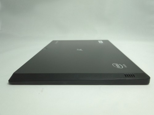 Jeśli potraktujemy tablet jako samodzielne urządzenie, nie wypada on szczególnie atrakcyjnie. Ponad 600 gramów wagi i ok. 1 cm grubości to parametry, które wypadają słabo na tle innych tabletów bez klawiatury. Sprzęt charakteryzuje się prostą stylistyką, o ostrych krawędziach, które od strony dwóch krótszych boków w ciekawy sposób przechodzą pod skosem.