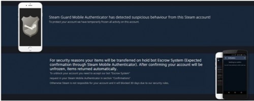 Przykładem złośliwego oprogramowania wykorzystującego platformę Steam jest tzw. Steam Stealer. Użytkownicy, którzy zostali przez niego zaatakowani, widzieli taki fałszywy komunikat: