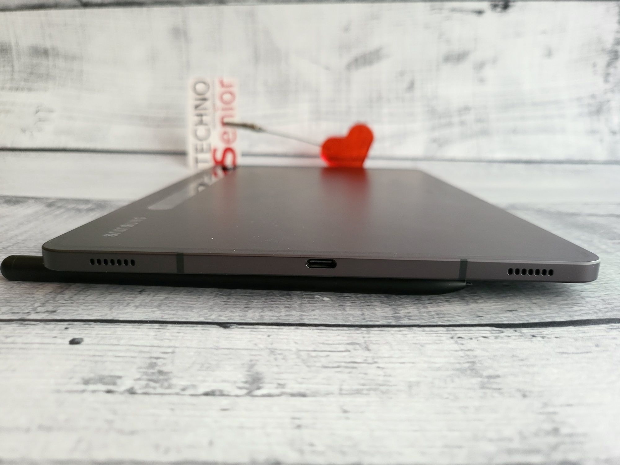 Razem z tabletem producent dostarcza nam w opakowaniu rysik – S Pen, który nie muszę już chyba przedstawiać. Został on wykonany z wysokiej jakości materiałów i zaprojektowany tak, aby zapewniać dobry chwyt – jest bardzo wygodny i ma się wrażenie, że trzyma się w ręku długopis czy ołówek. S Pen zapewnia szybki czas reakcji, co doskonale widać podczas użytkowania – reaguje natychmiast na wszystkie komendy czy dotyk. Do tego reaguje on na 4096 różnych poziomów nacisku, co pozwoli na precyzyjne rysowanie zarówno cienkich jak i grubych linii. Rysik pozwoli także na robienie zdjęć, regulację głośności czy zmianę slajdu prezentacji bez konieczności dotykania tabletu (przycisk na obudowie). Co więcej ułatwia również nawigację po aplikacjach i systemie oraz robienie codziennych notatek czy po prostu mobilną rozrywkę. Dodam jeszcze, że ładujemy go poprzez położenie rysika na dedykowanym do tego miejscu pod aparatami na tyle obudowy. To trochę niefortunne miejsce, bo przez to musimy trzymać tablet ekranem do dołu, gdy go ładujemy. Szkoda, że nie pomyślano o tym, aby schować rysik do wewnątrz jak to jest w telefonie S22 Ultra czy po prostu przyczepić na krawędzi.