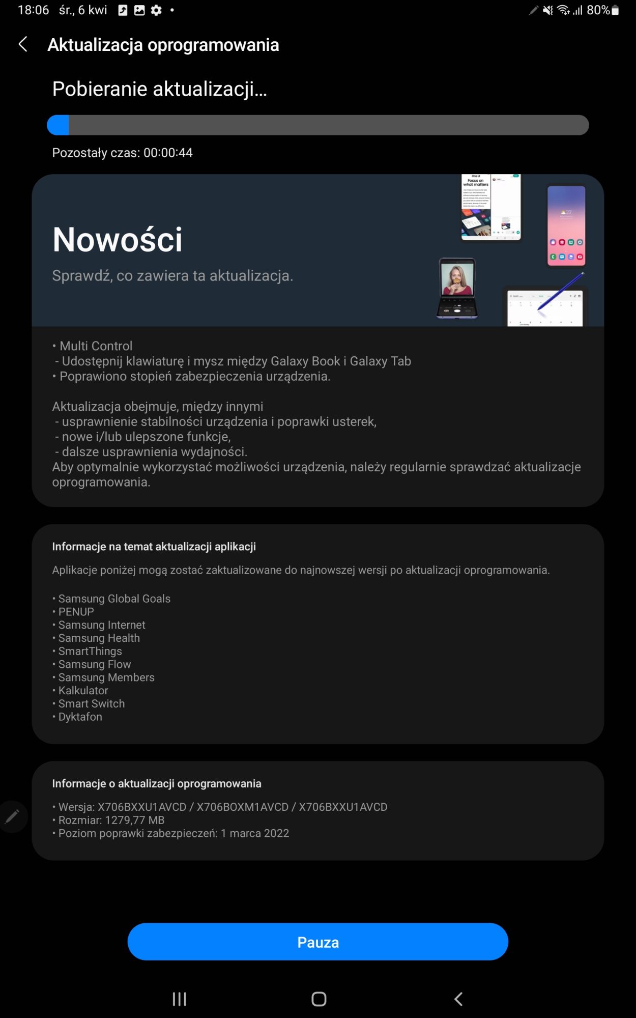 Na pokładzie tabletu znajdziemy aktualnie Android™ 12  z nakładką One UI 4.1 oraz komplet aplikacji od Google. Jeśli chodzi o sam system, to chyba nie musze go zbytnio przedstawiać. Użytkownicy telefonów Samsunga poczują się na nim jak w domu. Z ciekawszych funkcji jakie znajdziemy na pokładzie urządzenia to: