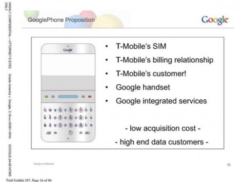 Okazuje się, że prototyp smartfon był dostępny na zasadach wyłączności w T-Mobile. Smartfon miał być przede wszystkim tani i nastawiony na transmisję danych. Pierwsza koncepcja Google Phone nie przewidywała dotykowego ekranu. Prototyp miał być także urządzeniem z klawiaturą QWERTY, a nie sliderem, które ostatecznie trafiło na rynek jako G1 – Test Google G1