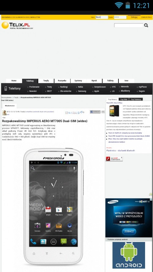 Imperius Aero MT7005 pracuje na systemie Android 4.0 Ice Cream Sandwich, ale już w styczniu planowana jest jego aktualizacja do najnowszego Androida 4.1, Jelly Bean.