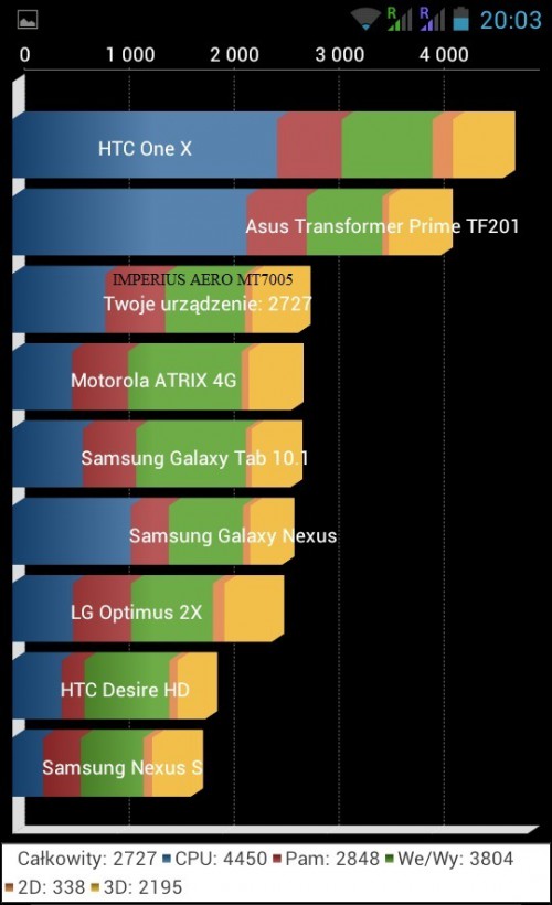 Wyposażono go w dwurdzeniowy procesor MTK6577, taktowany częstotliwością 1 GHz, wspomagany przez 512 MB pamięci RAM oraz układ graficzny Power VR SGX 531, dzięki czemu smartfon działa płynnie i nie tylko zaspokaja potrzeby użytkowników standardowych aplikacji, ale również poradzi sobie z bardziej skomplikowanymi graficznie grami. Przez kilka dni użytkowania, smartfon ani razu mi się nie zawiesił albo odmówił posłuszeństwa. Oprócz tego, Imperius Aero MT7005 nadaje się do sporządzania notatek, przeglądania i edytowania terminarza, kontaktów oraz dokumentów.