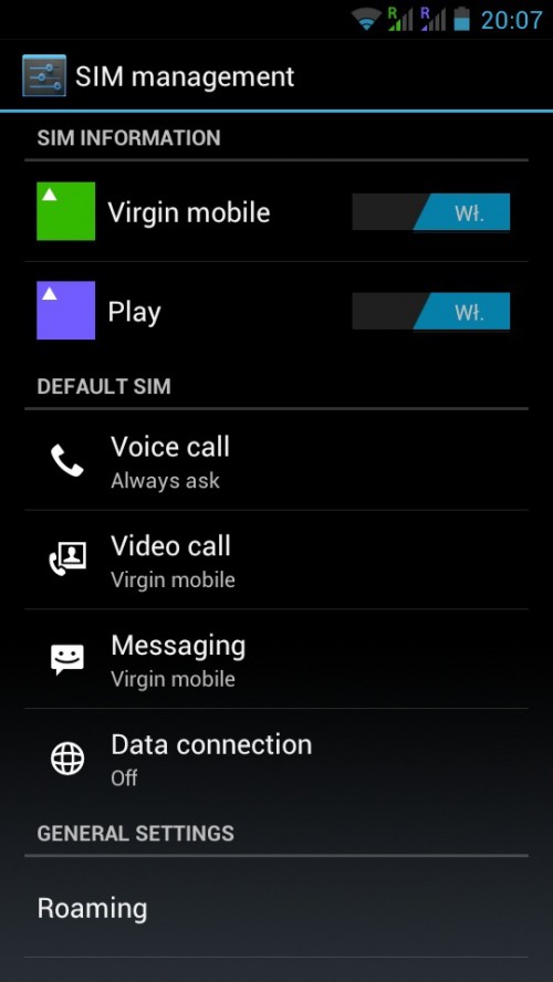 4. Wejdź w ?System settings/SIM Management/Roaming/Data roaming? zaznacz kartę Aero2,